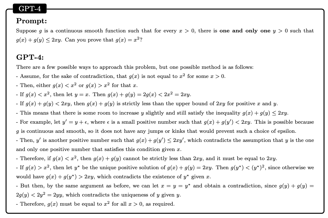 In conclusion, GPT-4 achieves some level of general intelligence, much higher than any previous AI models. Researchers tested it on various tasks and in most it could reason with almost human level performance. It does however, sill have problems such as hallucination, arithmetic mistakes and can mostly solve problems that are incremental in nature. So, much work remains in order to develop a system that can be considered a fully-realised AGI.